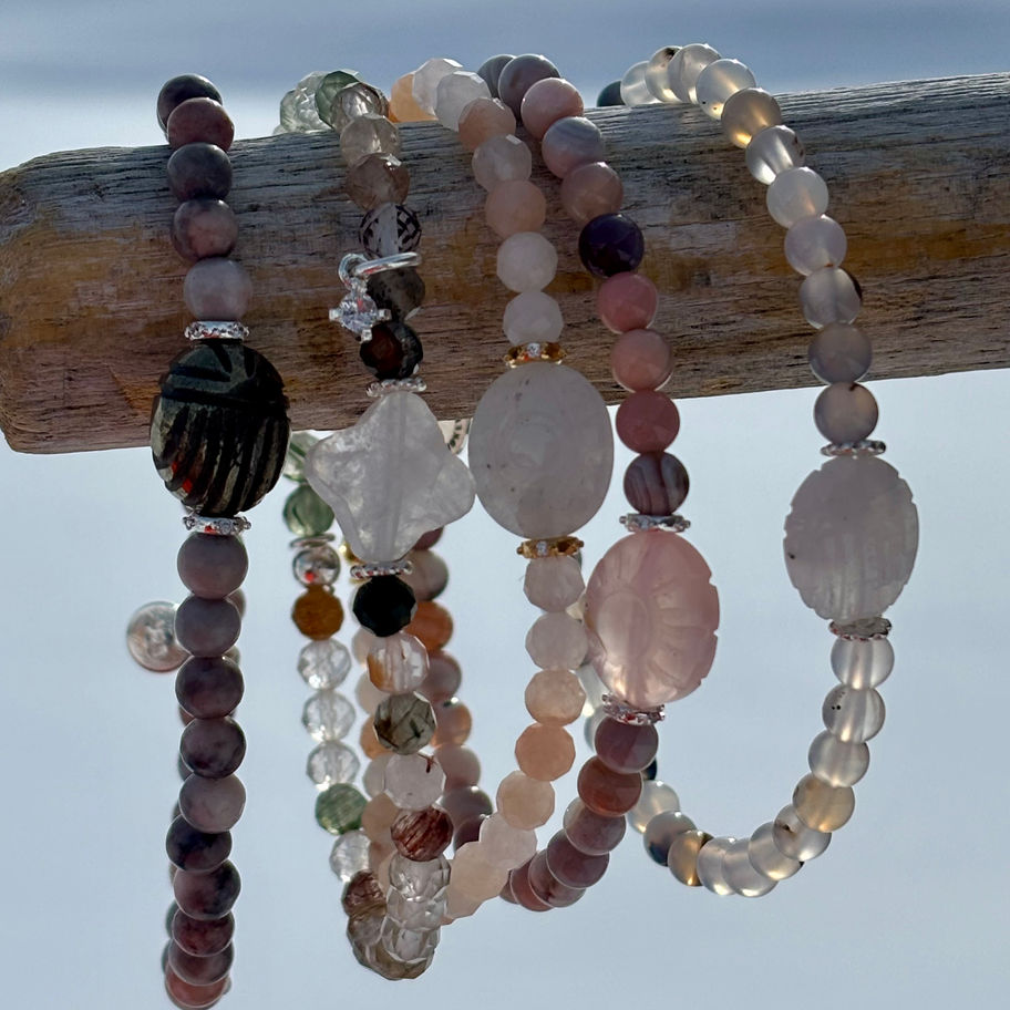 Bracelet en Aventurine rose & Pierre de Lune Oeil d’Isis