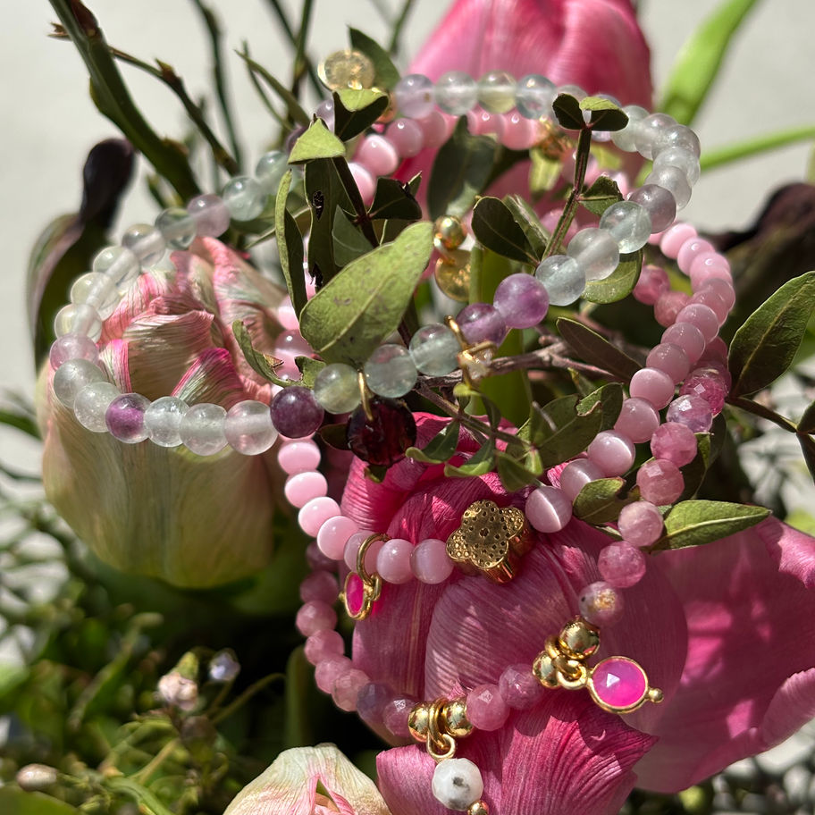 Bracelet en Fluorite - pendentifs diamant strass et Grenat