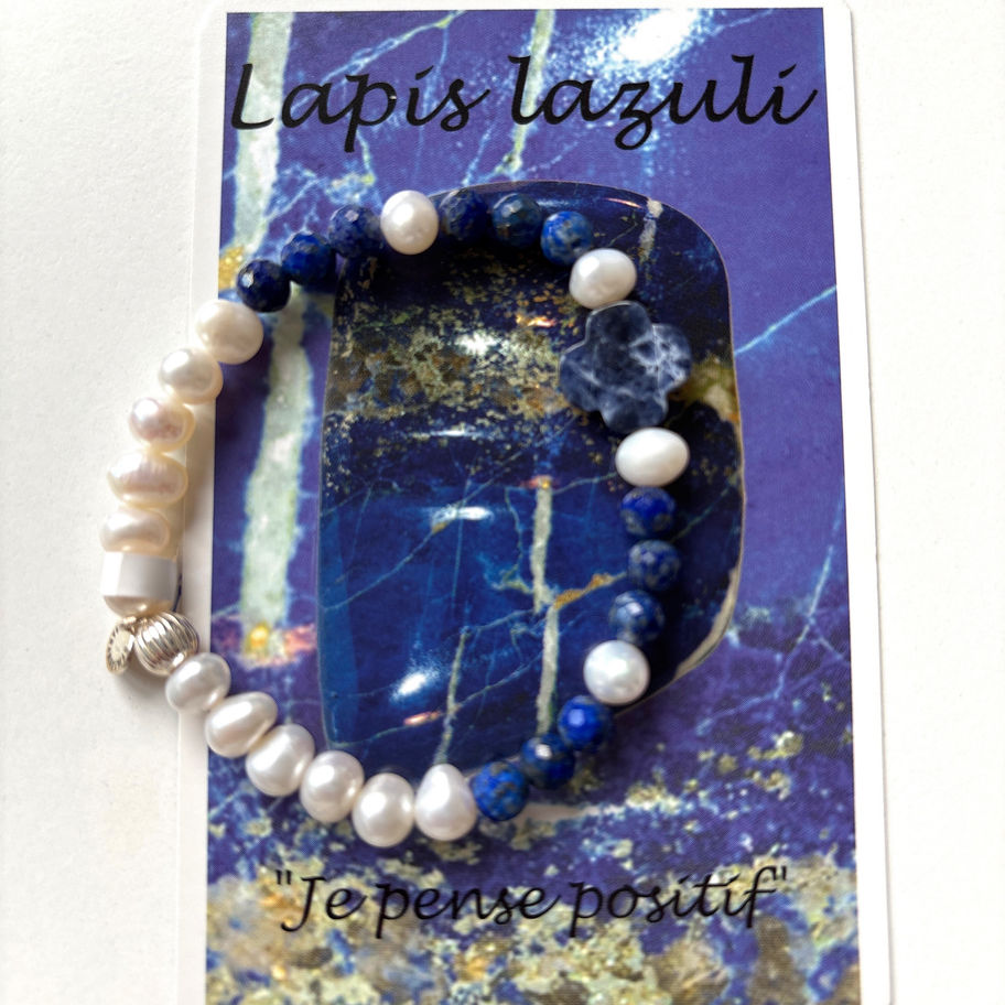 Bracelet en Lapis Lazuli et Perle d’eau douce - fleur en Sodalite