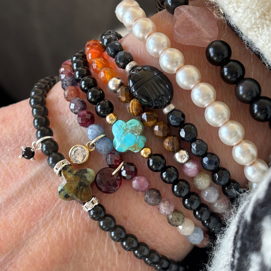 Bracelet en Obsidienne Oeil Céleste - Trèfle Turquoise Africaine