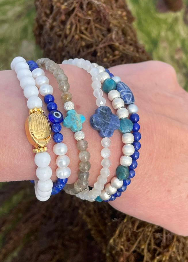 Bracelet en Pierre de lune & Fleur en Sodalite